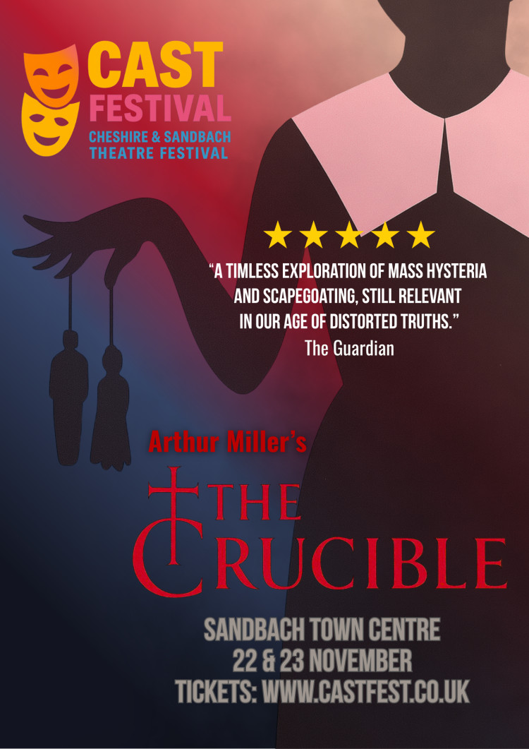 It also feature 'The Crucible' by Arthur Miller - an iconic masterpiece of fear, hysteria, and betrayal brought to the stage by a young cast aged 16–18, from Sandbach. Specially abridged for teenage performers, this version captures the intensity and timeless relevance of Miller's drama — distilled, urgent, and electrifying.