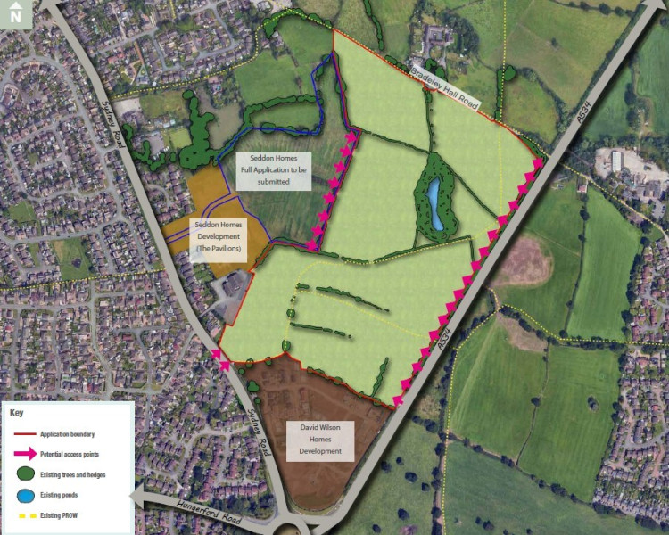 A planning statement from WSP on behalf of Seddon says "The outline application site extends to circa 18.9 hectares, comprising of agricultural fields and existing farm dwellings.