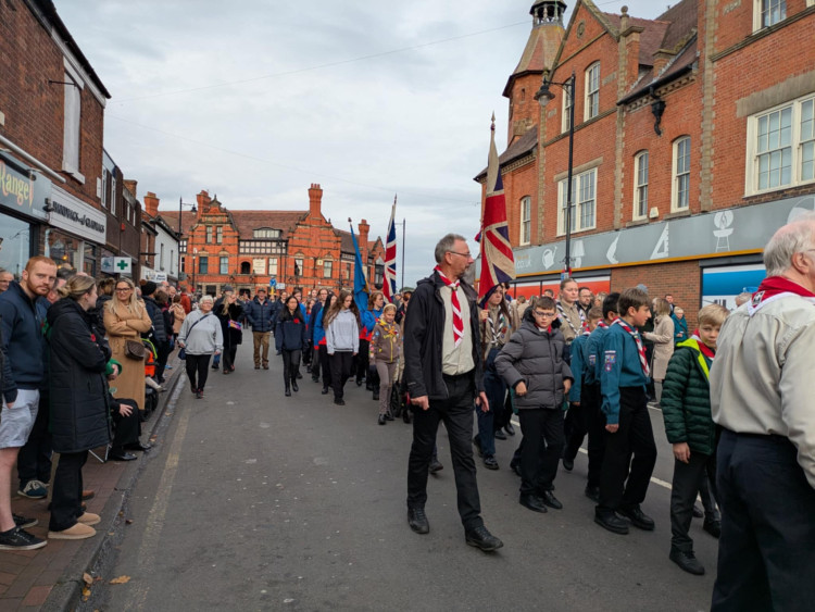 The procession included cadets, military veterans, local dignitaries and Scout groups.