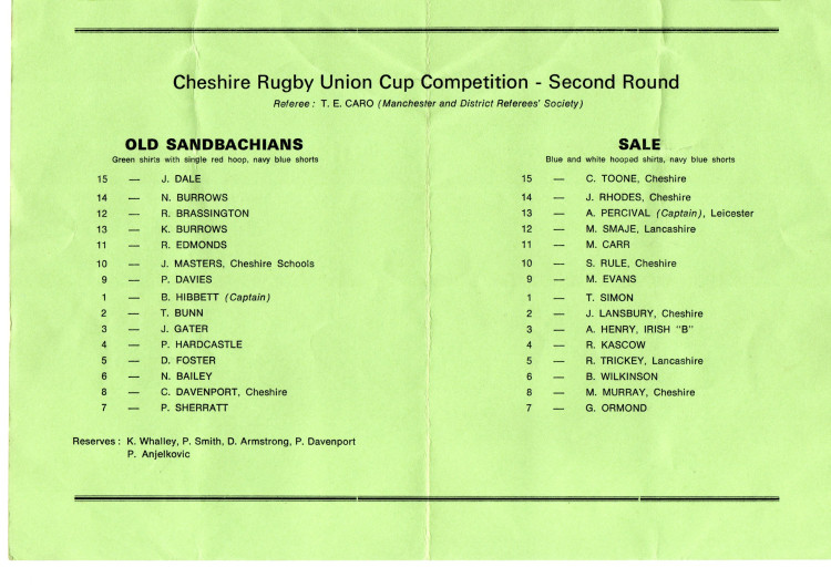 The online archive was started by Pad Davenport, who also features in the archive. Pad has had a long association with Sandbach RUFC, having made his senior debut for the then Old Sandbachians in 1972 at the age of sixteen and went on to make over 400 1st XV appearances for the club.
