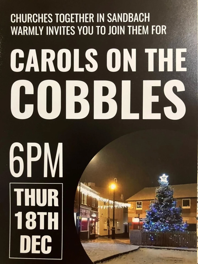 Fancy singing some carols outside? Churches Together in Sandbach has its 'Carols on the Cobbles' at 6 pm and everyone is welcome.