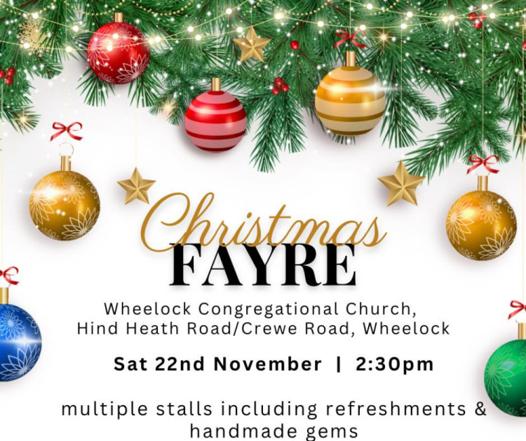 Wheelock Congregational Church has a Christmas fayre from 2.30 pm. It's a chance to grab some presents ready for Christmas before heading into town for the light switch on. Make it a festive afternoon!