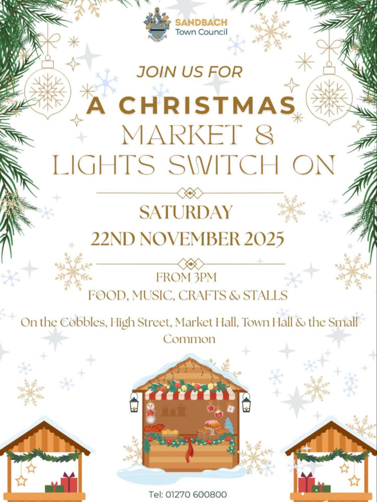 At Sandbach Market Hall, it's the Friday indoor market from 9 am until 4 pm - a chance to shop local and look around a variety of stalls. A chance to pick up some Christmas gifts and get ready for the festive time ahead!
