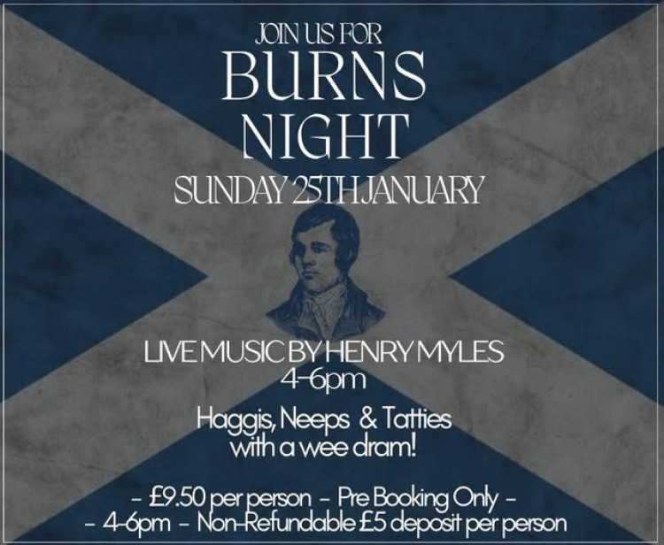 St Peter's Church in Elworth has a Burns' Night supper with music. Take your own drink. The event features a two course traditional Scottish menu and tickets available from the church office at St Peter's Church Hall.