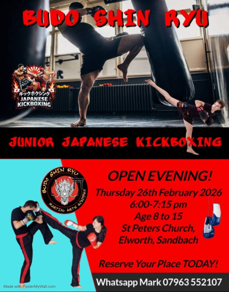 Are your children interested in learning the art of kickboxing? Budo Shin Ryu Junior Japanese Kickboxing has an open evening at St Peter's Church Hall in Elworth from 6 pm until 7.15 pm tonight (Thursday for ages eight to 15.