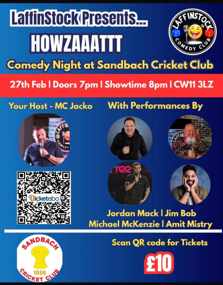 Looking to cheer yourself up this weekend? Look no further! Sandbach Cricket Club has a comedy night with tickets costing just £10. Doors open at 7 pm and the show starts at 8 pm.