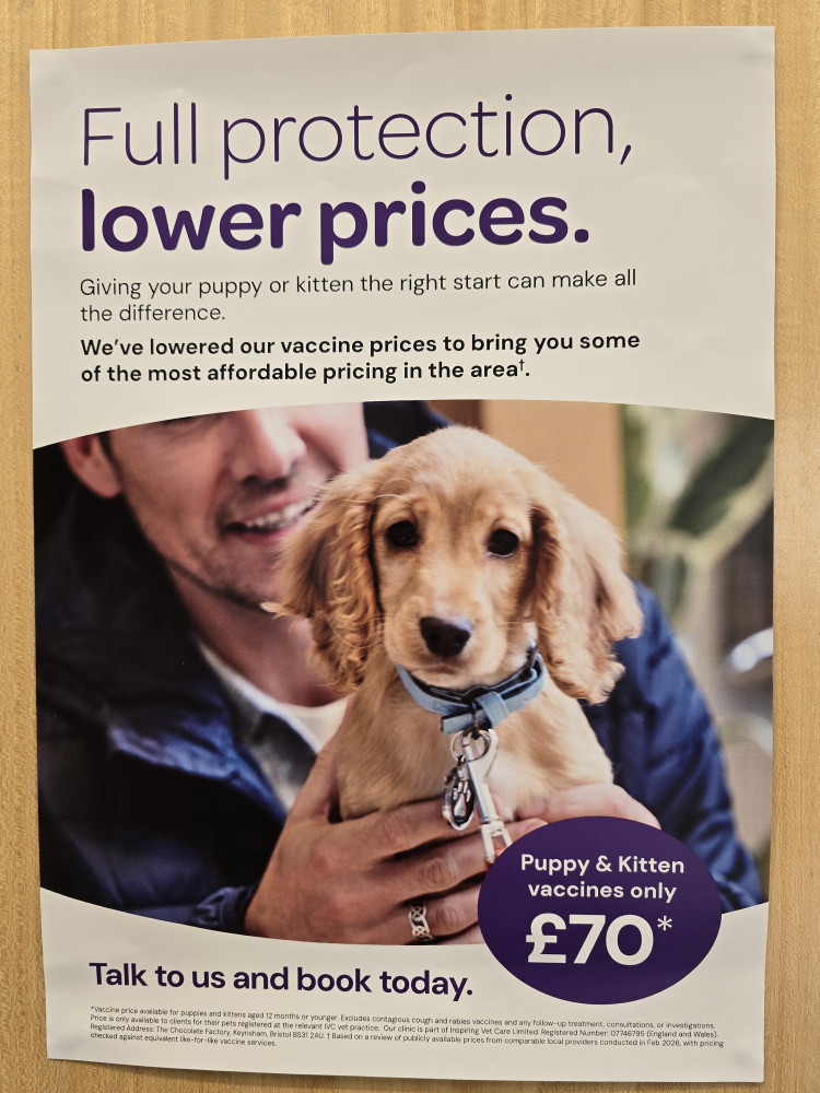 Cheshire Pet Sandbach has lowered the prices of its puppy and kitten vaccines as revealed on the poster below making it easier to take the plunge and add a pet to your family.