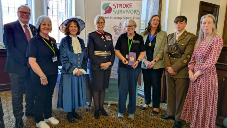Lord Lieutenant of Cheshire, Lady Redmond, presented the King's Award for Voluntary Services to the Stroke Survivors Speech & Language Support Group at Crewe Municipal Buildings attended by dignitaries and members of the charity.