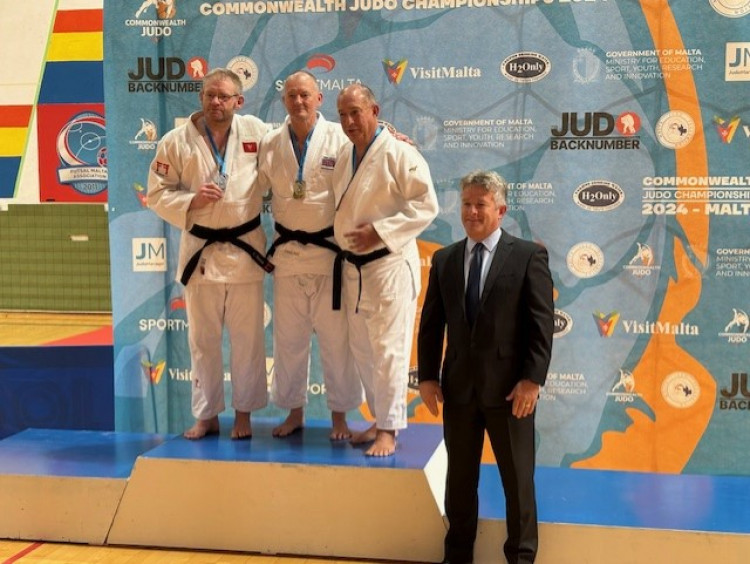 Veteran Sandbach judo star, Martin Barrie, notched up a bronze medal for England in the Commonwealth judo championships in Malta year.