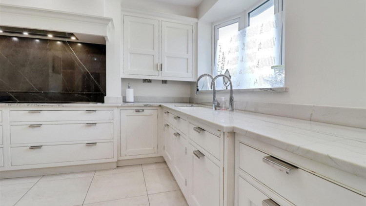 The kitchen features exquisite marble worktops, integrated appliances and contemporary fittings that blend style with functionality. There is a ground floor annex with its own shower room.